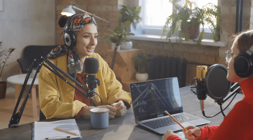 One of the biggest differences between podcasts and TV is the use of headphones. If you watch videos of the most popular podcasts, you’ll notice that both the host and the guest wear headphones.